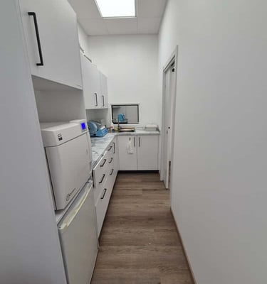 Sala de esterilización comunicada con todos los gabinetes. Para nosotros lo más importante es tu salud y la de tu familia, por ello ponemos un exhaustivo énfasis en la higiene y esterilidad de nuestros materiales e instrumentos.